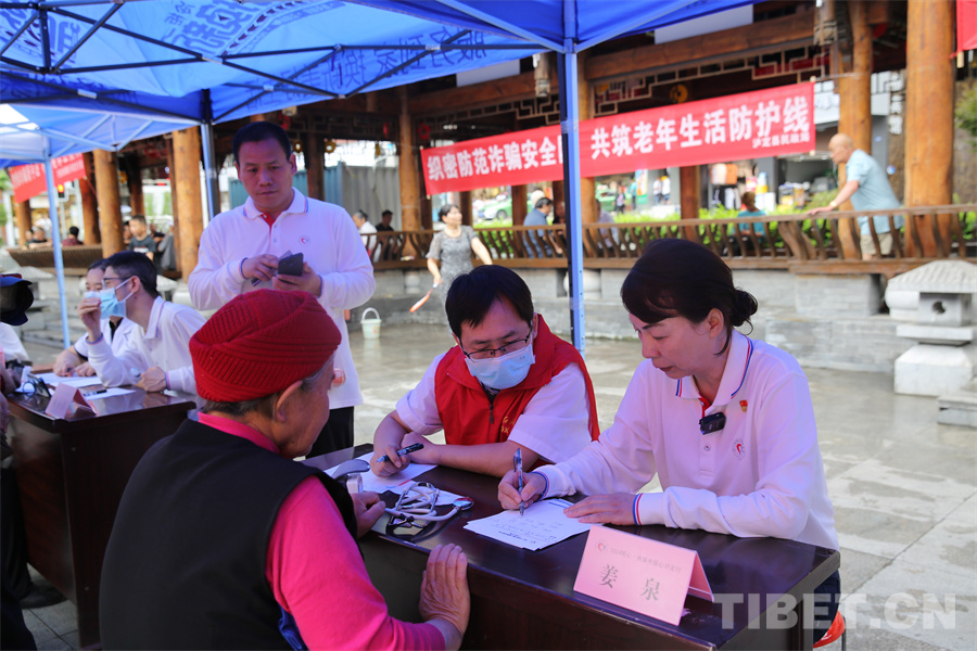 圖為7月9日上午,前來(lái)就診的群眾早早來(lái)到各個(gè)義診點(diǎn)排隊(duì)掛號(hào) 攝影:登真巴珍