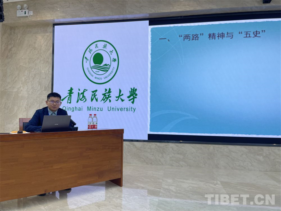 青海師范大學(xué)歷史學(xué)院張中磊副教授,以《淺談“兩路”精神融入高校歷史教學(xué)的意義與實踐路徑》為題,闡釋了“兩路”精神對學(xué)生的“五史”教育、培養(yǎng)青海學(xué)生的家國情懷、增強民族團結(jié)的意義,以及具體實踐路徑。