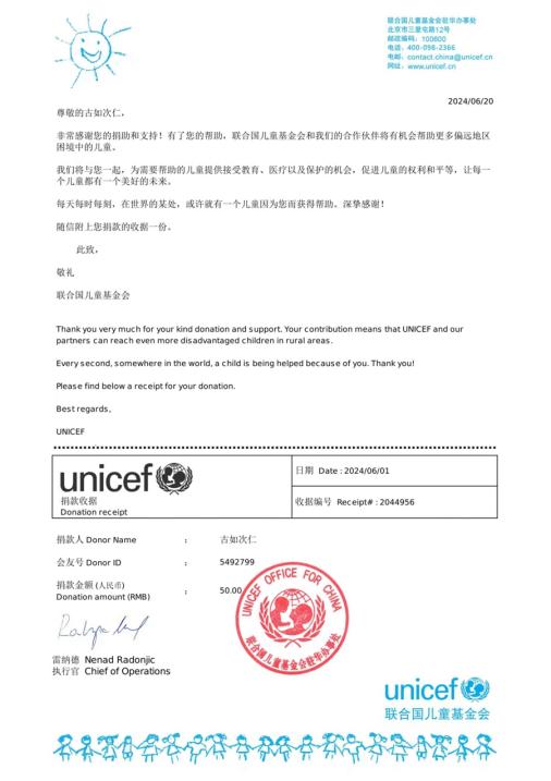 “之后的每個(gè)月我都會(huì)把省吃儉用節(jié)約下來的錢捐贈(zèng)給聯(lián)合國兒童基金會(huì),雖然每月捐贈(zèng)的金額數(shù)不大,但我這幾年一直力所能及地堅(jiān)持做著這件事。”古如次仁說,到大學(xué)后每月還有勤工儉學(xué)的收入,所以我會(huì)繼續(xù)堅(jiān)持做這件事,能通過自己的方式幫助到貧困兒童非常有意義。