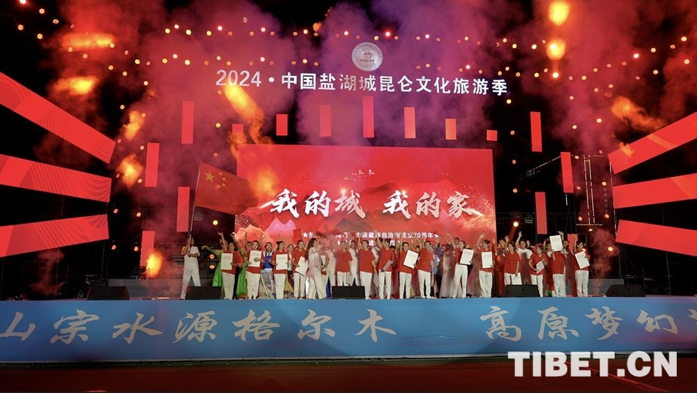 15日晚,2024·中國鹽湖城昆侖文化旅游季專場文藝晚會在開場舞《鼓舞聲聲望昆侖》中拉開帷幕。參演人員以多彩的舞姿和豪邁的歌聲表達心聲,以及對黨、對祖國、對人民、對格爾木的無限熱愛。
