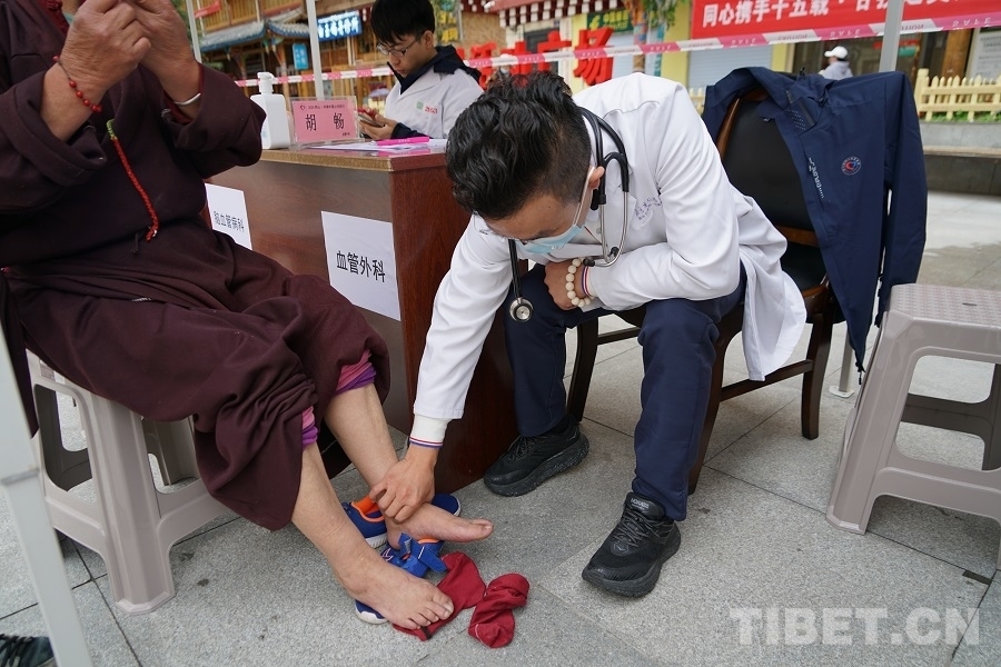 7月6日傍晚,歷經(jīng)一整天的奔波后,胡暢所在的“同心·共鑄中國心”甘孜行白玉縣醫(yī)療專家團(tuán)抵達(dá)白玉縣城。在接下來七天的幫扶活動(dòng)中,胡暢先后在白玉縣新時(shí)代文明實(shí)踐廣場、縣人民醫(yī)院、昌臺(tái)片區(qū)阿察鎮(zhèn)、河坡鄉(xiāng)中心小學(xué)等地義診,并在縣人民醫(yī)院為到場的當(dāng)?shù)蒯t(yī)護(hù)人員和消防隊(duì)員開展了一場以血管外科為主題的健康科普講座?;顒?dòng)期間,一聲聲道謝,一條條哈達(dá),一張張笑臉,道不盡的是患者們的感激,凝結(jié)的是胡暢與甘孜白玉再也割舍不斷的情感聯(lián)結(jié)?!霸诮诸^和群眾相遇,他們知道我們是北京過來的義診醫(yī)生,很歡迎我們,會(huì)微笑著和我們打招呼,讓人覺得很溫暖?!?nbsp;