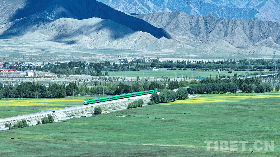 拉日鐵路如同一條金色哈達,“復(fù)興號”列車宛若綠色長龍。一條鐵路,一列動車,穿越格桑花海,馳騁雪域天路,串聯(lián)起西藏大美絕倫的自然景觀和瑰麗多彩的民俗文化,把珠峰腳下的日喀則點染得分外迷人。在拉日鐵路通車十周年這個值得紀念的時刻,這條高原鐵路正以新姿態(tài)、新形象、新服務(wù)向世人展示新時代西藏高質(zhì)量發(fā)展的生機與活力。