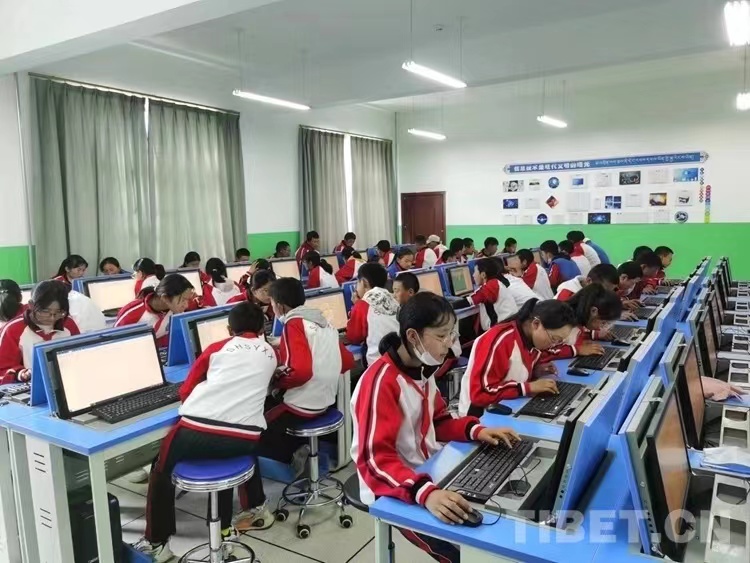 圖為西藏日喀則市上海實驗中學(xué)學(xué)生們在上信息技術(shù)課 攝影:王淑