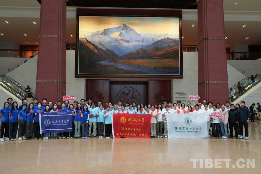 圖為西安交通大學(xué)、福州大學(xué)和西北農(nóng)林科技大學(xué)的暑期實踐隊參觀西藏博物館