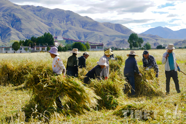 中國西藏網(wǎng)訊 金秋時(shí)節(jié),西藏自治區(qū)各地陸續(xù)迎來青稞的成熟與收割。世界青稞之鄉(xiāng)日喀則田間地頭到處是麥穗金黃、麥浪起伏,忙碌一年的農(nóng)民們開鐮收割,確保青稞顆粒歸倉,田間一派繁忙的收割景象。