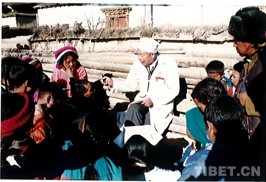 圖為訪談對象楊公衍(中間)為迪慶群眾義診 供圖:李志農(nóng)