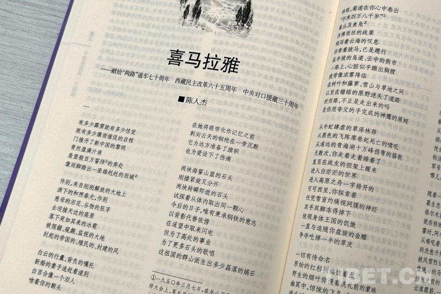 從地理喜馬拉雅到“千行詩”《喜馬拉雅》,第八屆魯迅文學(xué)獎獲得者、西藏自治區(qū)文聯(lián)副主席,同時也是本詩創(chuàng)作者陳人杰感慨萬千。創(chuàng)作這首凝練了“兩路”通車70周年、西藏民主改革65周年、中央對口援藏30周年歷史性事件,涵蓋了西藏前世今生到新時代西藏變化的長詩,并非易事。歷經(jīng)文思淤堵、無從下筆,到靈光乍現(xiàn)、一氣呵成,陳人杰表示:“《喜馬拉雅》的出爐,是天時地利人和,是新時代新征程的使然,是西藏的饋贈,是眾水般心靈澄澈的力量匯聚起的浩蕩的贊歌?!?/p>