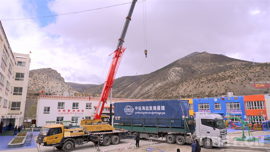 近日,中遠海運集團2024年援建的西藏自治區(qū)昌都市洛隆縣臘久鄉(xiāng)第一小學(xué)集裝箱食堂和G349洛隆段集裝箱文旅驛站,用20臺大卡車裝車,從遼寧省錦州市出發(fā),經(jīng)國道G349等道路,連續(xù)奔波近4000公里,順利運抵洛隆。