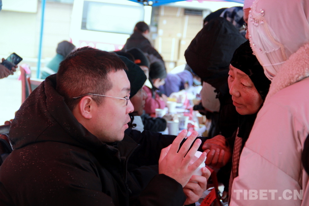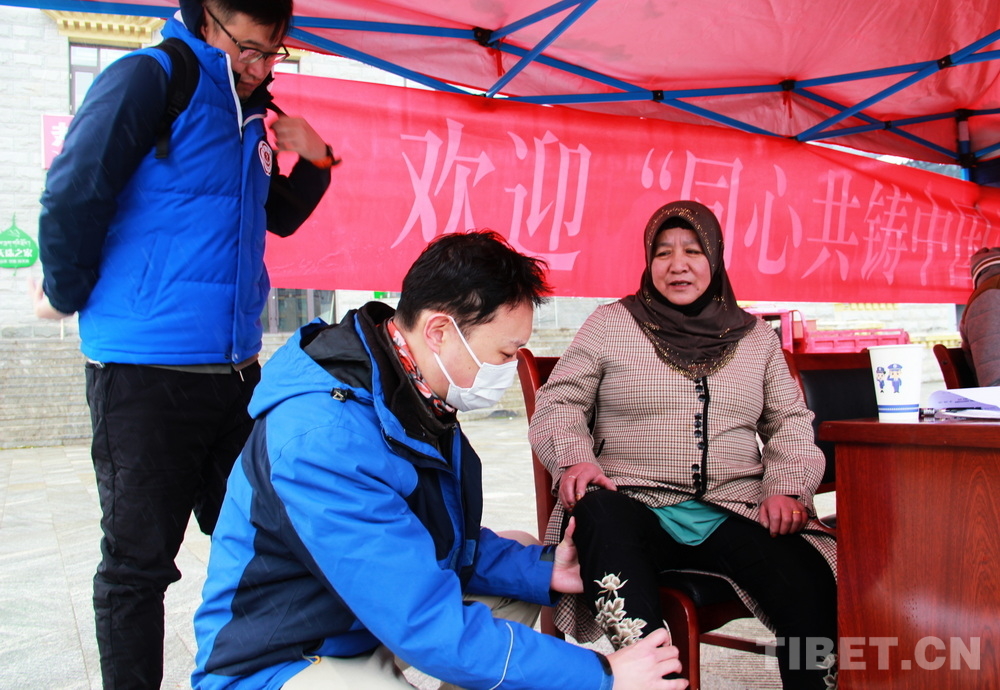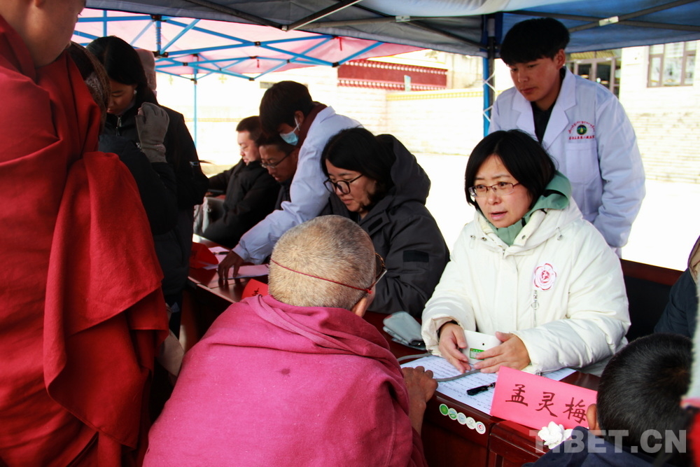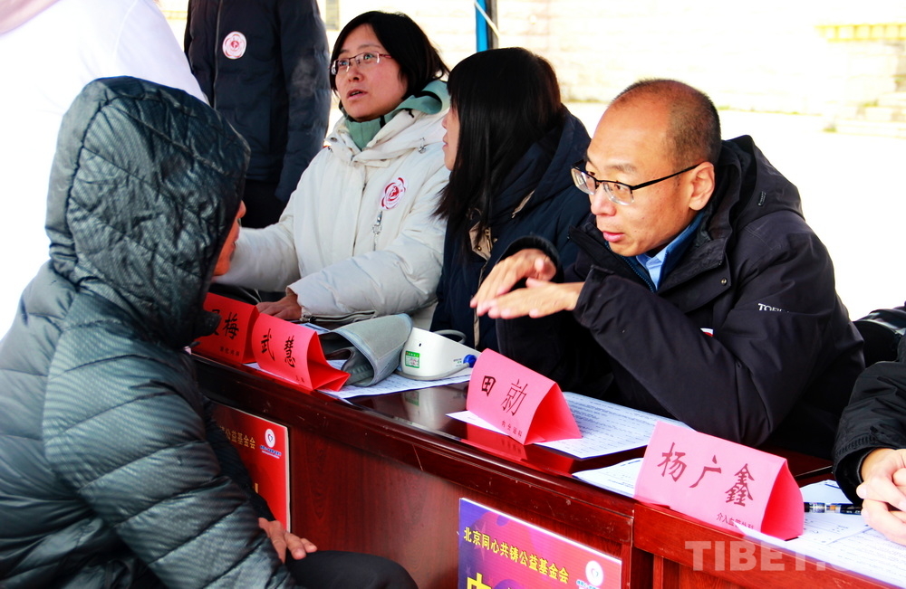高原的大雪天,在室外即便來回走動也感覺格外寒冷。前來問診的患者絡繹不絕,醫(yī)務志愿者們堅守崗位,身披雪花,腳踩積雪,在翻譯的幫助下不停接診,一坐就是大半天。有的醫(yī)務志愿者專心接診,渾然不知衣服上已經積雪;有的醫(yī)務志愿者發(fā)現(xiàn)患者不太理解疾病的分科,就同時擔起了分診工作;有的醫(yī)務志愿者自身高反強烈,吸著氧也要堅持接診……