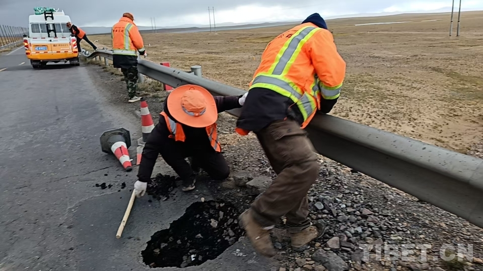 受低溫限制,唐古拉山路段的油路養(yǎng)護(hù)季節(jié)性非常強(qiáng),每年的5至10月是養(yǎng)護(hù)的黃金時(shí)間。為了能在有限的時(shí)間內(nèi)更好地養(yǎng)好公路,每年這個(gè)季節(jié),我和工友們都要在凌晨四五點(diǎn)出發(fā),一絲不茍地進(jìn)行日常巡查,對(duì)破損的路面進(jìn)行及時(shí)修補(bǔ)。每天工作超過十個(gè)小時(shí),餓了吃些糌粑,渴了喝點(diǎn)酥油茶,累了就靠在車上休息一會(huì)兒。春天,我們處理路面裂縫;夏天,我們清理塌方;冬天,我們與冰雪戰(zhàn)斗。我們?nèi)硇耐度?,用青春和汗水守護(hù)這條公路,確保這條至關(guān)重要的運(yùn)輸動(dòng)脈能夠抵御極端惡劣氣候的考驗(yàn),讓每一輛過往車輛都能安全順暢通行。