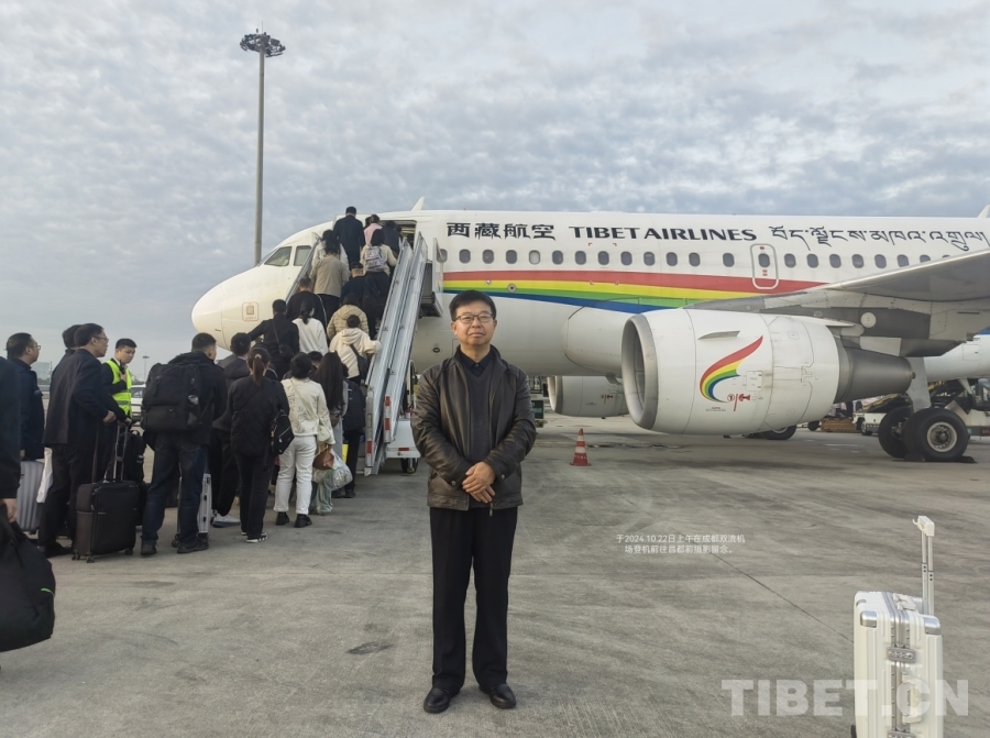圖為作者在成都雙流機(jī)場(chǎng)飛往昌都邦達(dá)機(jī)場(chǎng)的航班前留影 作者供圖