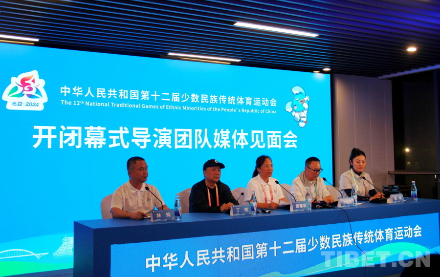 中國西藏網(wǎng)訊 11月22日,中華人民共和國第十二屆少數(shù)民族傳統(tǒng)體育運(yùn)動會(以下簡稱運(yùn)動會)在海南三亞開幕。開幕式結(jié)束后,運(yùn)動會開閉幕式導(dǎo)演團(tuán)隊(duì)媒體見面會在三亞市體育中心舉行。導(dǎo)演團(tuán)隊(duì)就開閉幕式、主創(chuàng)團(tuán)隊(duì)、演員排練和幕后的精彩故事進(jìn)行了介紹。
