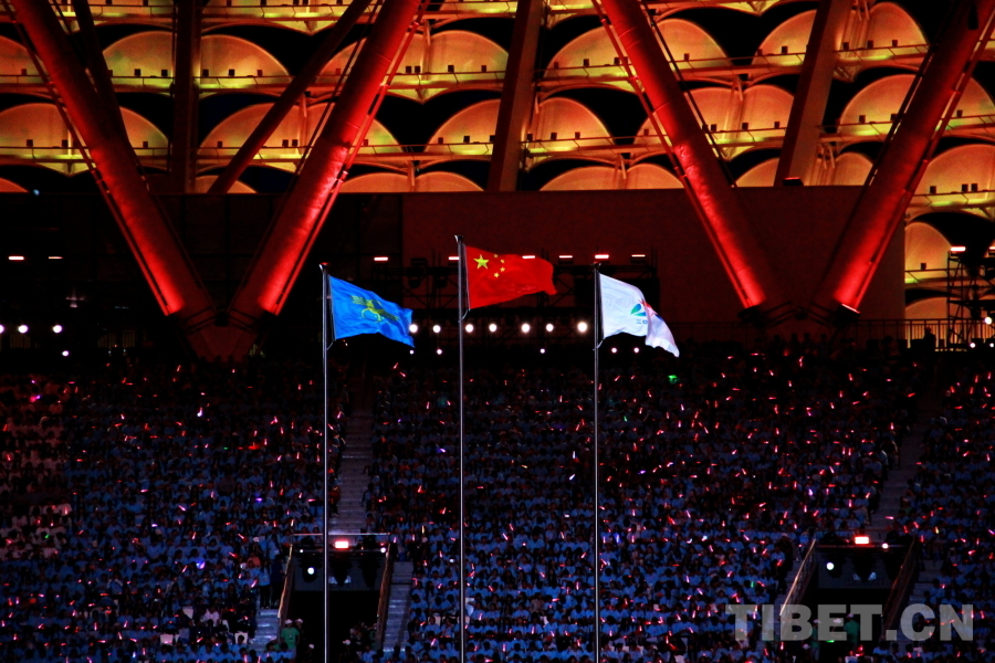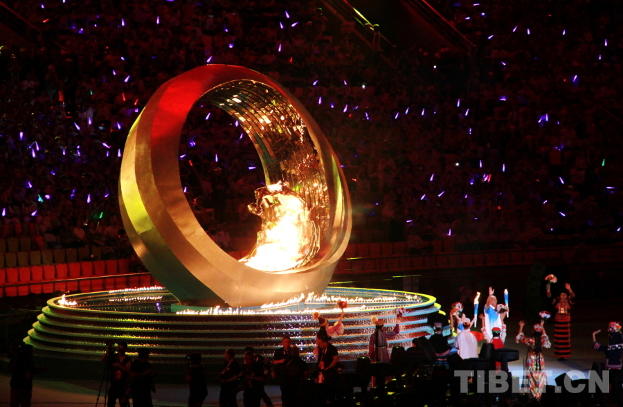 圖為第十二屆全國少數(shù)民族傳統(tǒng)體育運(yùn)動會主火炬點(diǎn)燃 攝影:劉莉