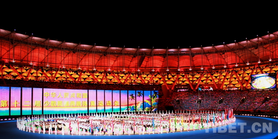 圖為第十二屆全國少數(shù)民族傳統(tǒng)體育運(yùn)動會開幕式現(xiàn)場 攝影:劉莉