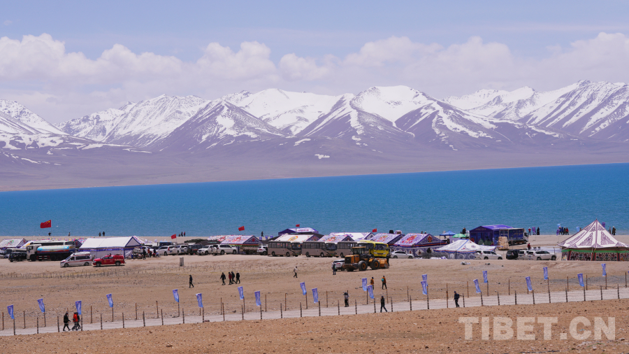 圖為納木錯開湖日,遠(yuǎn)處雪山、湖水、帳篷等融為一體的美麗“畫卷”。攝影:德吉卓瑪