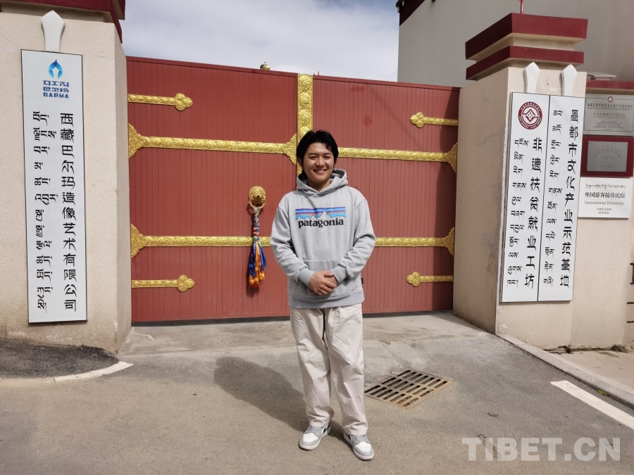 小伙子名叫嘎瑪次仁朗加(后文簡稱朗加),是巴爾瑪錘揲法造像技藝第八代傳承人,1995年出生在昌都市卡若區(qū)嘎瑪鄉(xiāng),13歲跟隨父親學習巴爾瑪錘揲法造像技藝,至今已有16年。