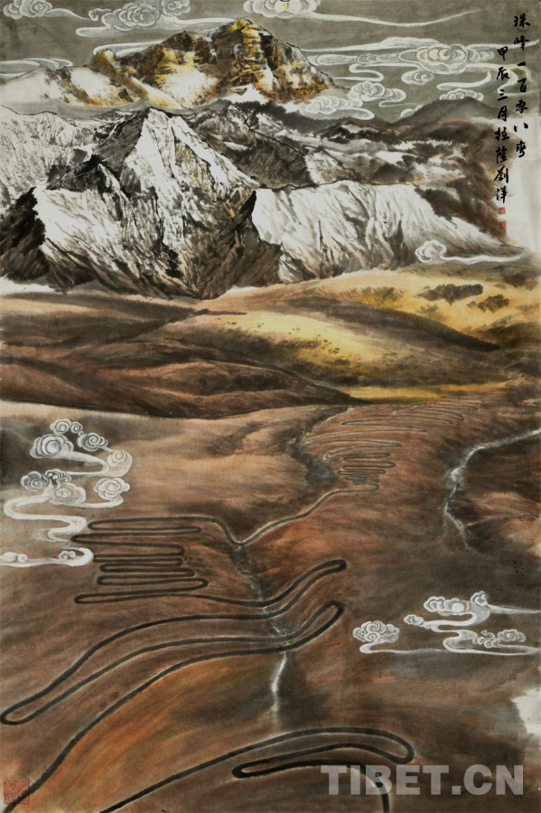 圖為劉洋繪畫作品《珠峰一百零八彎》