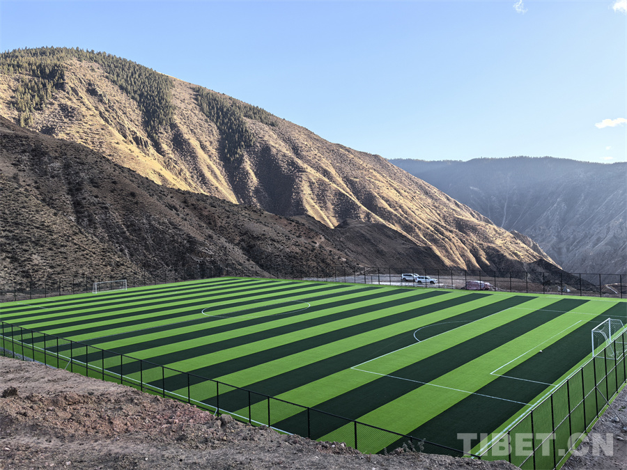 圖為西藏自治區(qū)昌都市洛隆縣馬利鎮(zhèn)如今煥然一新的足球場