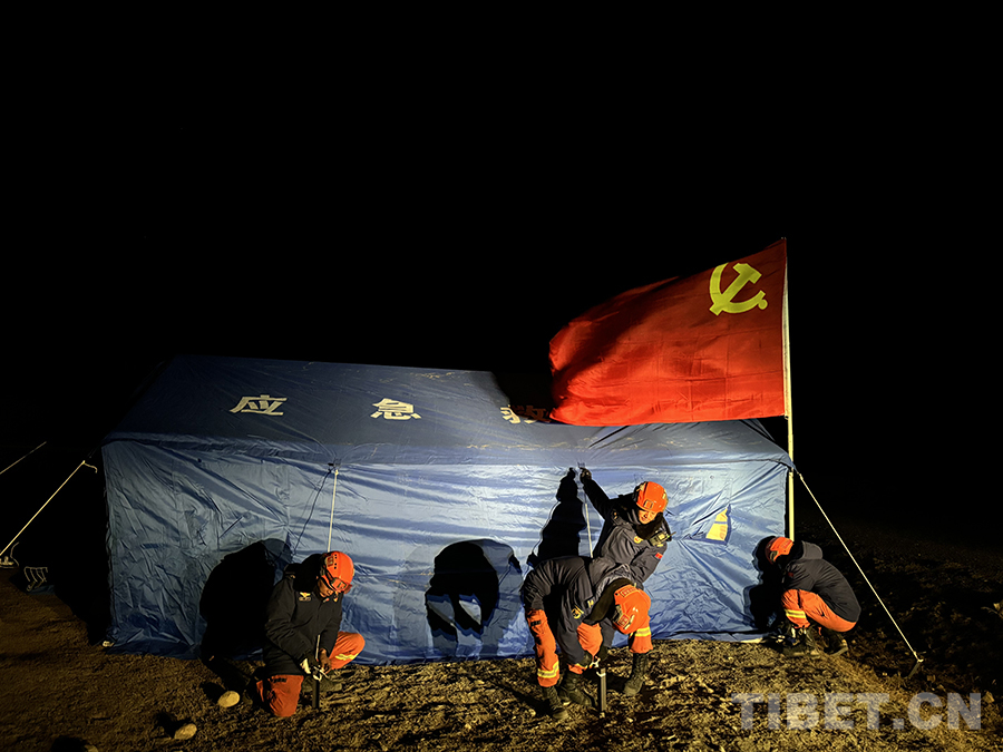圖為救災(zāi)現(xiàn)場搭建帳篷