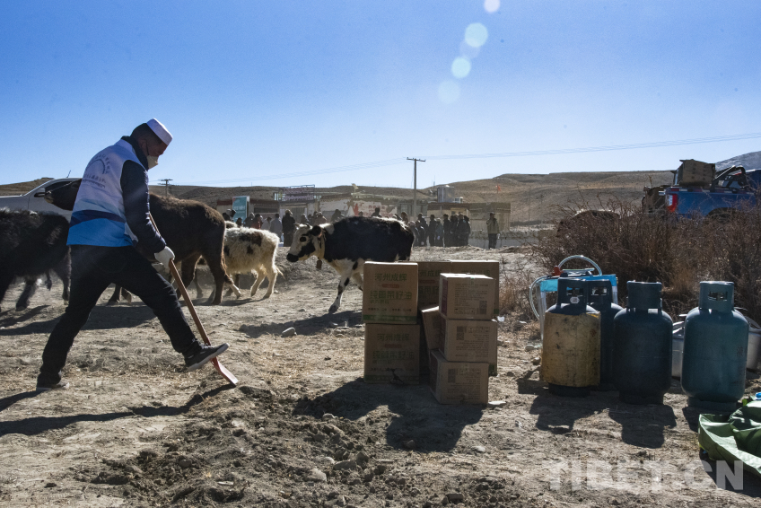 中國西藏網(wǎng)訊 “比起做一天生意,不如來災(zāi)區(qū)奉獻自己的愛心?!?月8日,清晨的陽光剛剛越過山脊撒向大地,雪域高原尚未在晨曦中開啟升溫,一群愛心人士已早早在定日縣曲洛鄉(xiāng)左措村地震安置點現(xiàn)場開始搭建帳篷,準備發(fā)放物資、開火起灶。