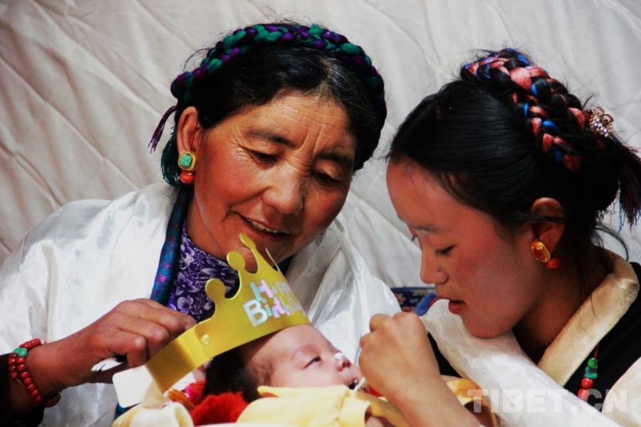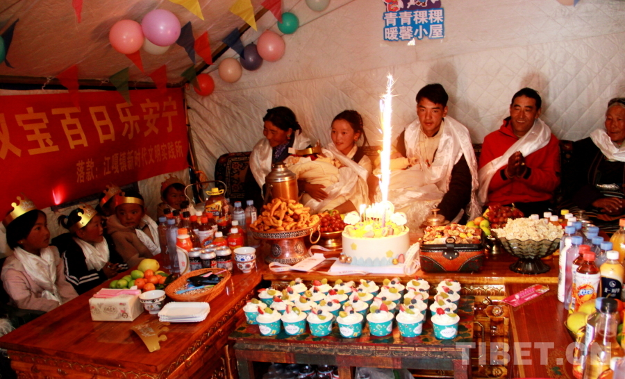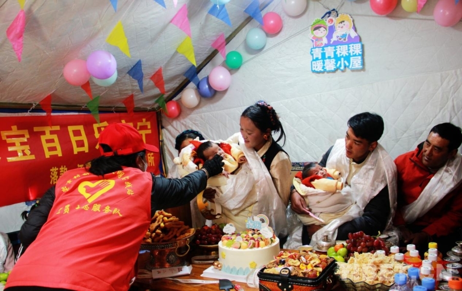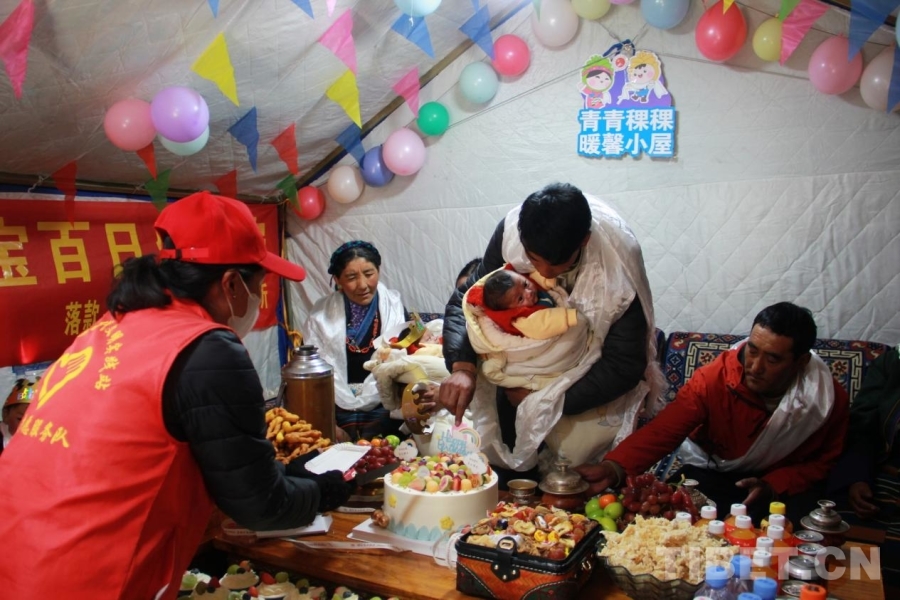 圖為在西藏自治區(qū)日喀則市定結縣江嘎鎮(zhèn)榮貢村舉辦的“情暖震后帳篷,共賀雙寶百日”活動 攝影:劉莉