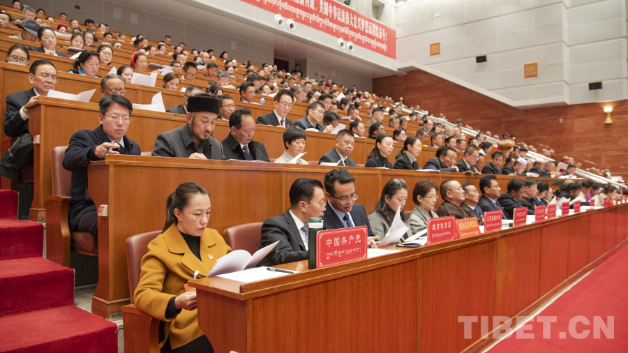 圖為西藏自治區(qū)人大代表聆聽人大常委會工作報告 攝影:趙振宇