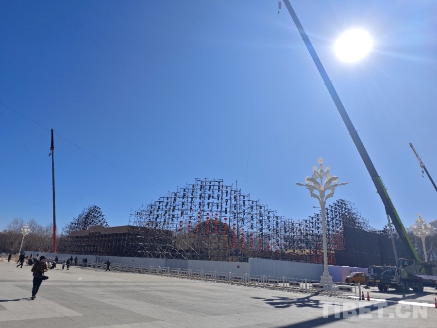 圖為布達(dá)拉宮廣場的春晚分會場布置現(xiàn)場 攝影:趙婧茹