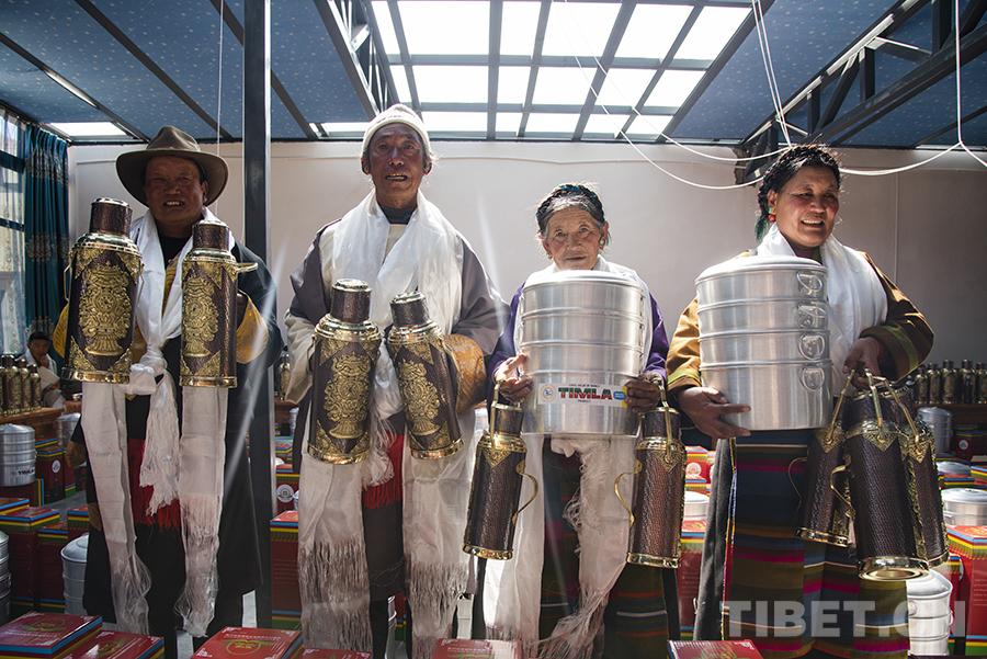 “因受地震的影響,今年的分紅儀式與以往相比簡單一些。我們村兩委經(jīng)過商議,決定用今年的村集體收入為每戶購置多功能蒸鍋、銅壺等作為‘分紅’。一方面,因?yàn)榇蠹椰F(xiàn)在都在安置板房里生活,這些物品對于村民來說實(shí)用性更強(qiáng);另一方面,銅壺也有一定的裝飾作用,為村民簡單的板房內(nèi)增添了一份像樣的‘家具’。”村黨支部書記旺加布說。