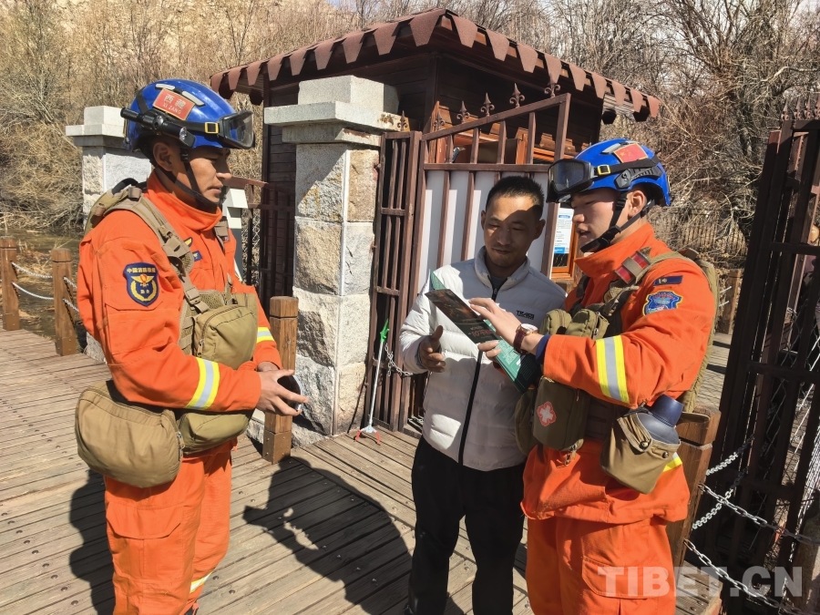 圖為西藏森林消防總隊(duì)特勤大隊(duì)指戰(zhàn)員在拉魯濕地向來往市民游客普及防火知識(shí)