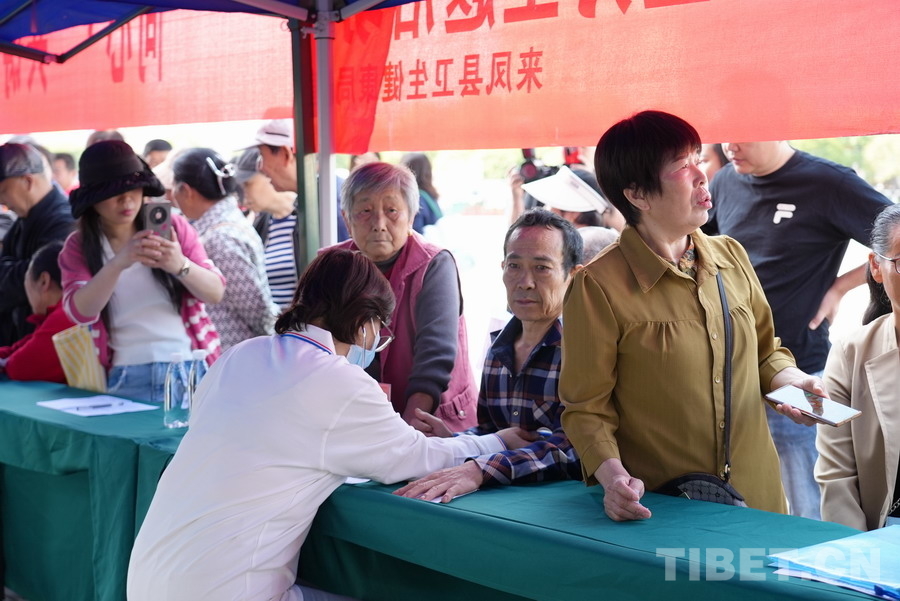 中國西藏網訊 4月18日,“同心·共鑄中國心”大型公益醫(yī)療服務活動走進湖北省恩施土家族苗族自治州來鳳縣。來自北京的10名醫(yī)療專家組成的聯合義診團隊,在喳西泰廣場為當地群眾提供健康咨詢、疾病篩查及個性化診療服務?;顒蝇F場,專家們耐心解答群眾健康問題,針對常見病、慢性病進行細致篩查,并提出專業(yè)診療建議。(中國西藏網 記者/蘇洋)