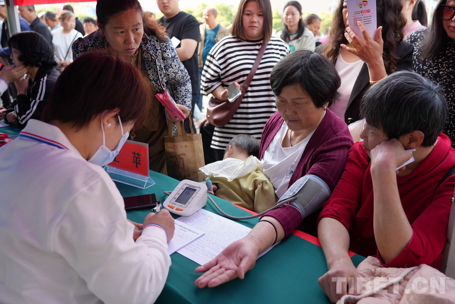 圖為王蘋醫(yī)生為群眾測量血壓 攝影:蘇洋