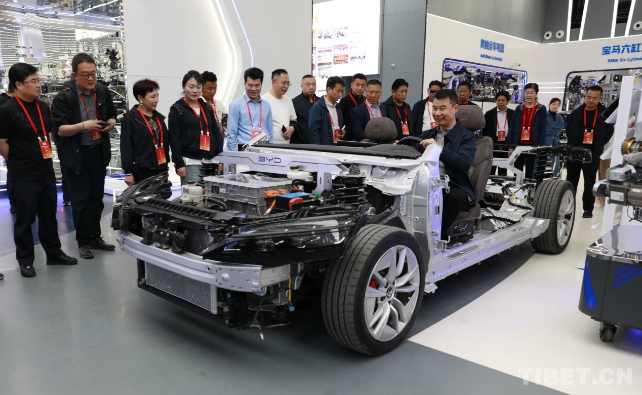 圖為全國政協(xié)委員、西藏自治區(qū)工商聯(lián)副主席、西藏青年企業(yè)家商會會長、西藏眾源建材集團(tuán)有限公司董事長卓嘎(左三)與西藏自治區(qū)工商聯(lián)民營企業(yè)家赴京學(xué)習(xí)參觀團(tuán)一行在北方國際汽車教育展廳+實操教室參觀學(xué)習(xí) 攝影:劉莉