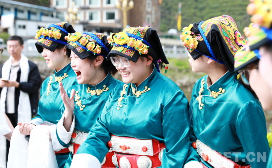 圖為身著嘉絨藏族盛裝的四川省阿壩州女孩們迎接“同心·共鑄中國心”大型公益活動(dòng)醫(yī)務(wù)志愿者們的到來 攝影:劉莉