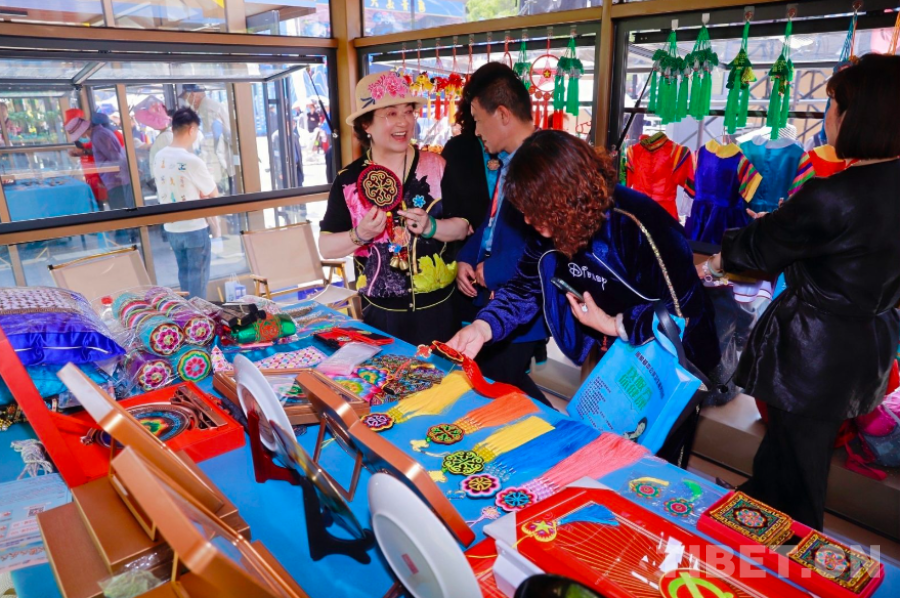 圖為民眾挑選特色手工非遺繡品 青海省文化和旅游廳供圖