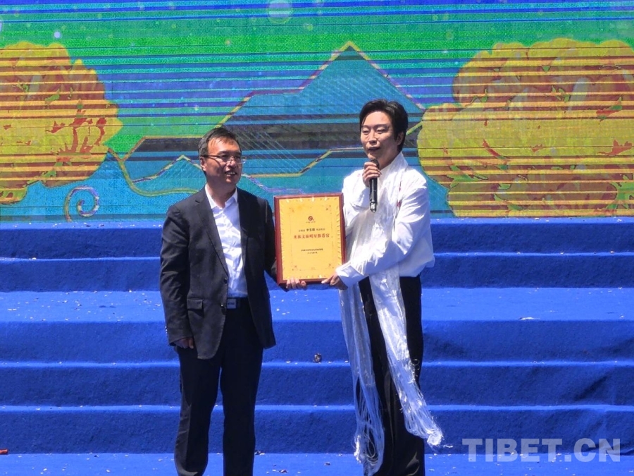 圖為5月28日,米林市第十七屆黃牡丹藏醫(yī)藥文化旅游節(jié)開幕式上,李玉剛被聘為“米林市旅游形象大使”。攝影:王淑