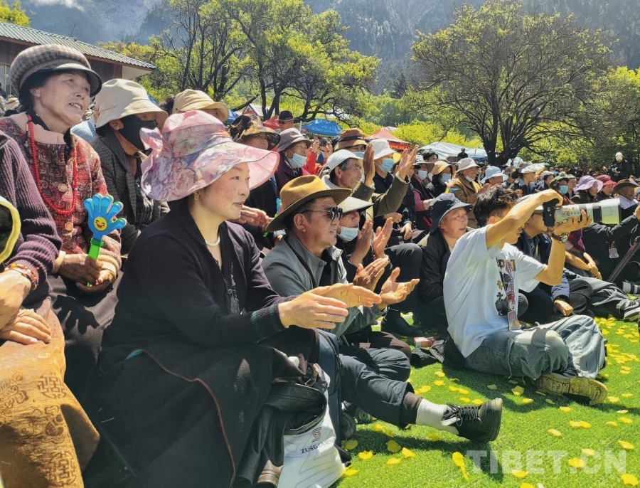 圖為5月28日,米林市第十七屆黃牡丹藏醫(yī)藥文化旅游節(jié)開幕式上,群眾在觀看節(jié)目。攝影:趙釗
