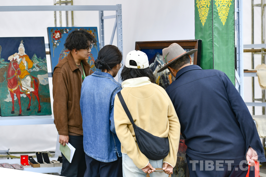 在集市的另一頭,是昌都市瑪吉阿媽唐卡畫院所展出的唐卡漆畫?!捌岙嬀哂欣L畫和工藝的雙重屬性。我們畫院主要是傳承嘎瑪嘎赤畫派的藝術作品,但近年來我們將傳統(tǒng)畫派藝術和福建漆畫進行了有機結合,以漆畫的工藝結合唐卡的審美,創(chuàng)作出一系列作品。這些唐卡漆畫不僅在西藏很受歡迎,也有其他省份的人士向我們定制。”多吉告訴記者,每一件唐卡漆畫都融合了西藏傳統(tǒng)故事、傳說等文化內(nèi)涵,不僅是一件藝術品,更是向外界展示西藏優(yōu)秀傳統(tǒng)文化的窗口。