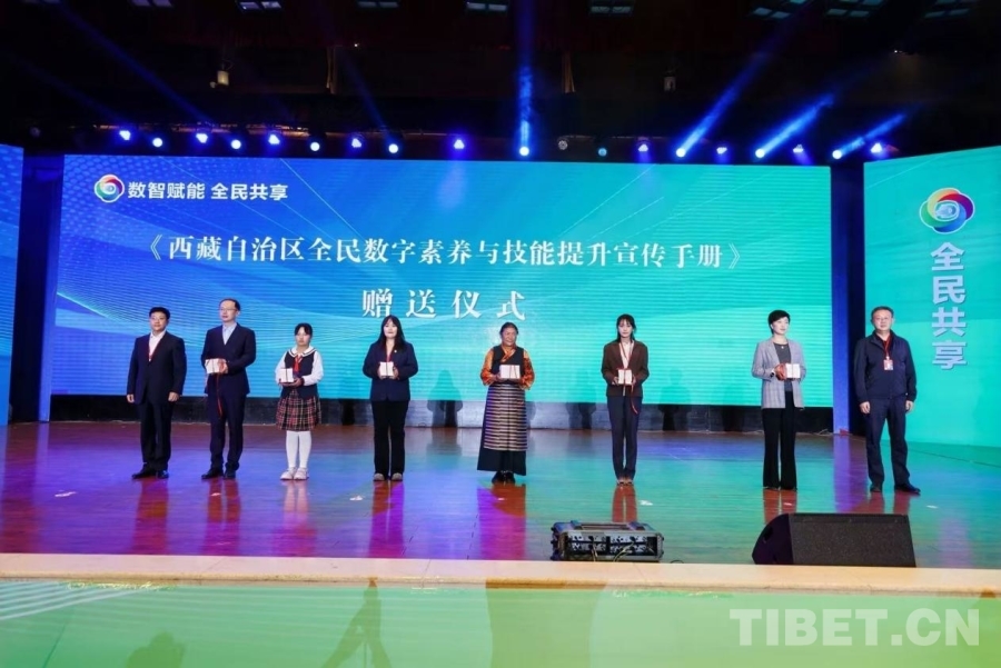 啟動(dòng)儀式上,活動(dòng)主辦方為社會(huì)各界代表贈(zèng)送了國家通用語言文字版本、藏語版本的《西藏自治區(qū)全民數(shù)字素養(yǎng)與技能提升宣傳手冊(cè)》;為西藏自治區(qū)全民數(shù)字素養(yǎng)與技能提升典型案例(網(wǎng)絡(luò)作品)頒發(fā)證書;為第二批自治區(qū)級(jí)全民數(shù)字素養(yǎng)與技能培訓(xùn)基地授牌。社會(huì)各界代表圍繞數(shù)字賦能作主題分享,師生代表向全區(qū)師生發(fā)出“提升師生數(shù)字素養(yǎng)與技能 共建共享數(shù)字化發(fā)展成果倡議書”。