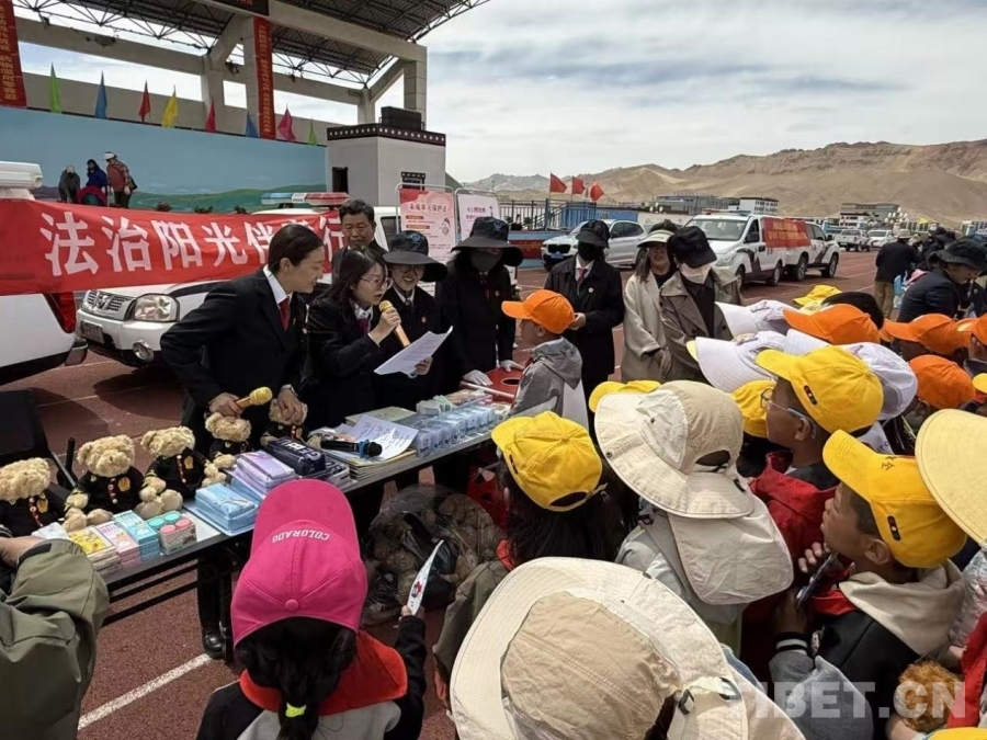 圖為今年5月底,維權(quán)工作站走進(jìn)阿里地區(qū)陜西實(shí)驗學(xué)校開展普法宣傳活動現(xiàn)場 來源:阿里法院微信公眾號