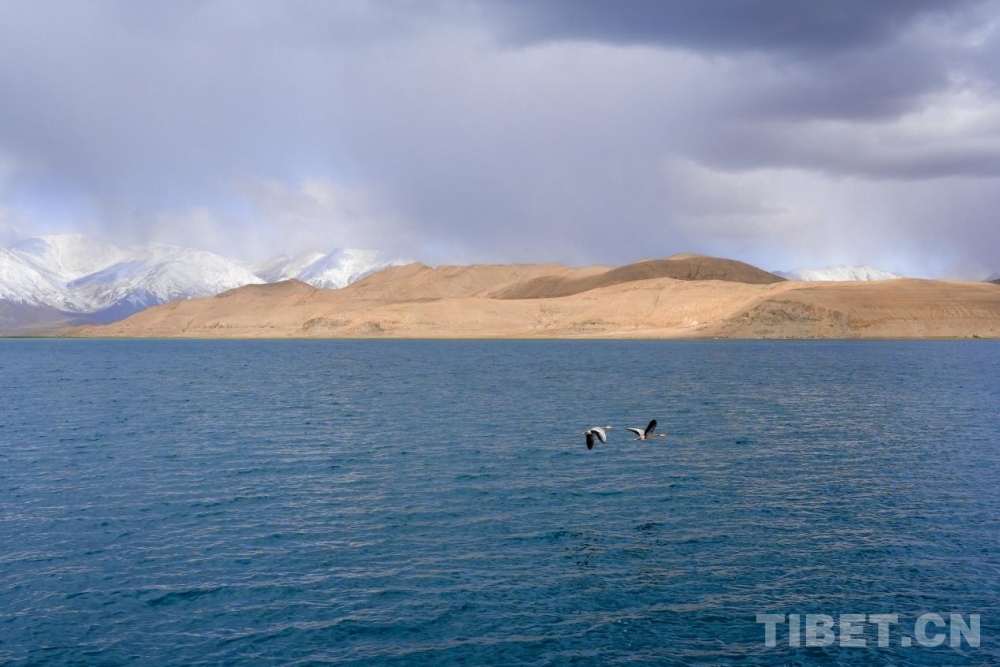 班公湖位于西藏阿里地區(qū)日土縣,湖面海拔4240米,是青藏高原西部最大的湖泊。湖水由東向西含鹽量遞增,因而在陽(yáng)光照射下,班公湖宛如一塊巨大的藍(lán)綠漸變琥珀綴于廣袤沙原。湖中央的鳥島上,鳥舞蹁躚,鷗鷺齊飛,不僅有棕頭鷗、斑頭雁,還有國(guó)家一級(jí)保護(hù)動(dòng)物黑頸鶴等珍稀鳥類。每逢夏季,成千上萬(wàn)的鳥在此繁衍后代,遠(yuǎn)眺鳥島,能見(jiàn)一派沙鷗翔集、群鳥歸巢的壯觀景象。(中國(guó)西藏網(wǎng) 記者/邊子捷)