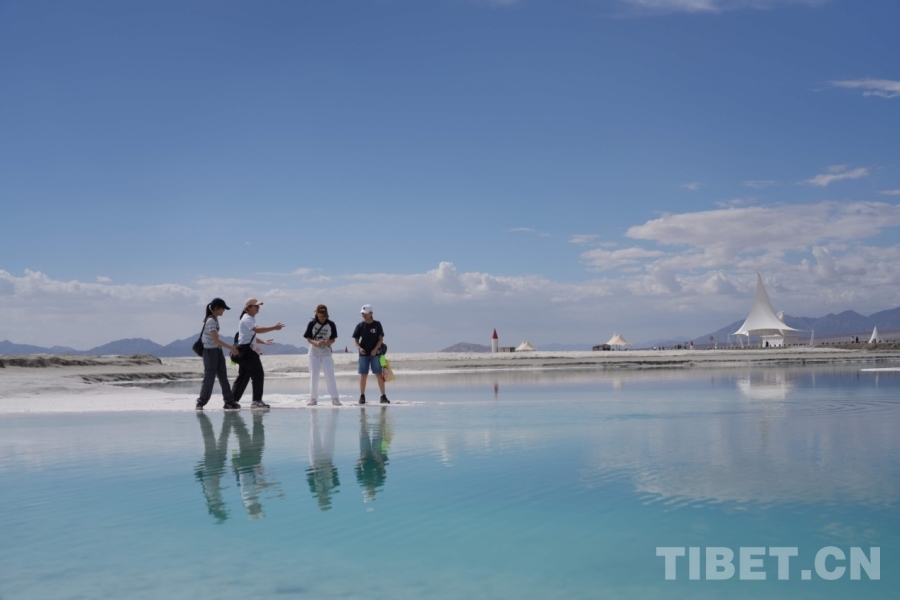 在海西蒙古族藏族自治州格爾木市,海拔2670米的察爾汗鹽湖,翠綠之美令人震撼,風(fēng)起波動(dòng),湖面如碎鉆鋪就的星河;天然形成的鹽花形態(tài)各異宛如珊瑚叢生,在陽(yáng)光下,閃耀著璀璨的光芒;浮在鹵水上的“萬(wàn)丈鹽橋”延伸至天際,橫跨湖面,還有周邊的現(xiàn)代化采鹽船,輸鹵管道,車(chē)來(lái)車(chē)往,工業(yè)設(shè)施與自然景觀形成強(qiáng)烈對(duì)比。來(lái)自妙法寺劉金龍中學(xué)三位女生欣賞著美景,也紛紛討論這次令人驚嘆的“自然課堂”。鐘澄情同學(xué)不自禁感慨:“這里跟網(wǎng)上宣傳的一樣美!就像是上帝打翻的蘋(píng)果汁?!痹袂缤瑢W(xué)驚嘆道:“曾經(jīng)我只聽(tīng)說(shuō)過(guò)茶卡鹽湖,來(lái)到這里才知道察爾汗鹽湖是中國(guó)最大、世界第二大的鹽湖,面積相當(dāng)于56個(gè)茶卡鹽湖,鹽儲(chǔ)量可以讓全球80億人吃上兩千年。”而許馨月同學(xué)更加震撼這里工業(yè)與自然相互交融的獨(dú)特魅力,直呼這是一座真正的“寶庫(kù)”!