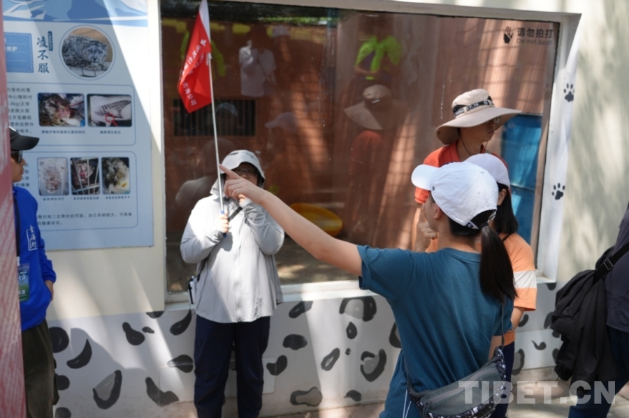 在青藏高原唯一的、海拔最高的大型綜合野生動(dòng)物園——青藏高原野生動(dòng)物園里,講解員介紹,這里不僅是動(dòng)物園,更是一處集野生動(dòng)物觀賞、保護(hù)、科研、繁育、科普教育為一體的國(guó)家4A級(jí)景區(qū)和國(guó)家級(jí)科普教育基地。大家在這里了解野生動(dòng)物救助故事和保護(hù)常識(shí),也爭(zhēng)相在相機(jī)里記錄藏羚羊的靈動(dòng)、牦牛的壯碩、猞猁的奇特。來(lái)自中華基督教會(huì)全完中學(xué)的陳曦彤同學(xué)最感興趣的就是雪豹了。聽(tīng)完對(duì)雪豹“凌”氏家族的救助故事,她意識(shí)到,這些生活在高海拔地區(qū)的生靈們有很多人、甚至是幾代人在默默守護(hù),她希望有更多的人都來(lái)關(guān)注青藏高原的野生動(dòng)物,讓每一只動(dòng)物都有自己的家。