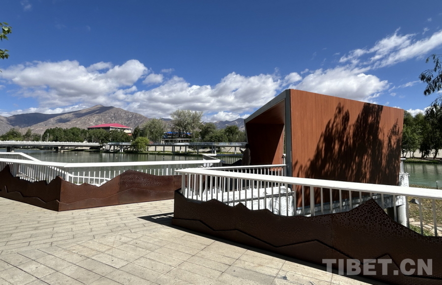 圖為拉薩兩島內(nèi)河綠色生態(tài)廊道上連通南北岸的廊橋護(hù)欄裝飾著吉祥八寶圖案 攝影:劉莉
