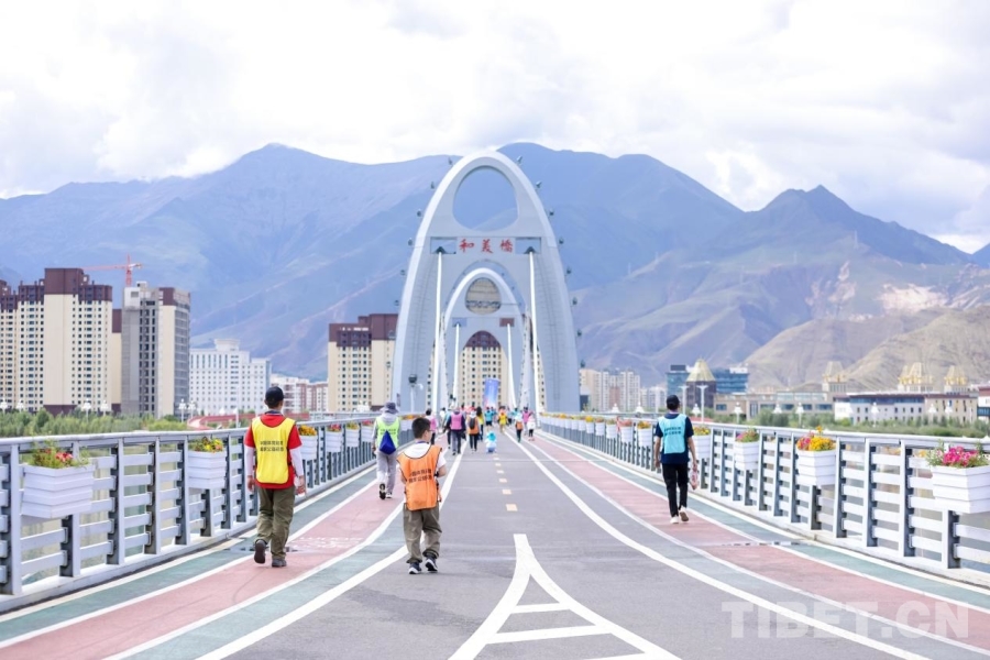 圖為健身愛(ài)好者在拉薩和美橋上健步走