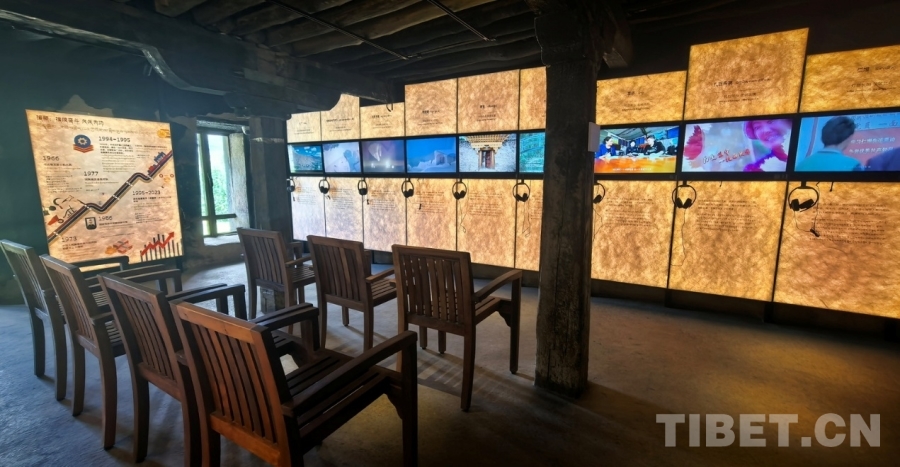 圖為強(qiáng)吉莊園公共文化活動(dòng)中心二層通過影音設(shè)備講述新時(shí)代為建設(shè)社會(huì)主義現(xiàn)代化新西藏做出杰出貢獻(xiàn)的人們的故事 攝影:劉莉
