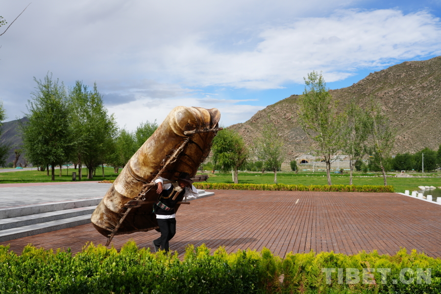 牛皮船每條重七十到八十斤,要背著這樣的重量跳舞是很不容易的。但是拉巴次仁說(shuō),如果表演的人都不享受這個(gè)過(guò)程,不熱愛這項(xiàng)藝術(shù),舞蹈也就失去了它的韻味。一次他們?nèi)ダ_演出,舞蹈隊(duì)伍要從宇拓路的一端背著牛皮船一邊表演一邊前進(jìn),直到另一端結(jié)束,近一千米的距離,隊(duì)員們都累得滿頭大汗,但是大家都咬牙堅(jiān)持了下來(lái)。