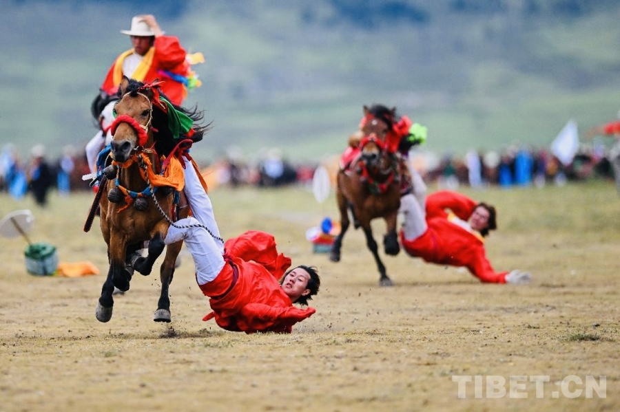 7月31日,上午的“騎馬拾哈達”比賽中,騎手們高速奔馳中精準俯身,靈巧地將散落的哈達一一掠起。下午的“新(老)呷糾賽”將氣氛推向高潮,騎手們在馬背上完成各種高難度平衡動作,力量與柔韌的極致結(jié)合引得觀眾陣陣驚呼?!斑@是我們祖輩傳下來的本事,看到年輕人練得這么好,心里高興!”觀賽的藏族村民扎西多吉臉上笑開了花。