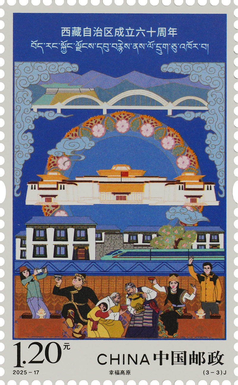 圖為《西藏自治區(qū)成立六十周年》紀(jì)念郵票之“幸福高原” 中國郵政西藏分公司供圖