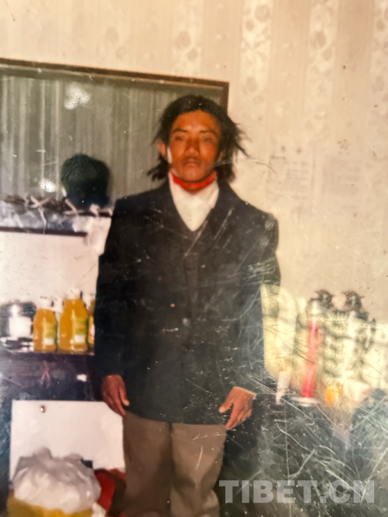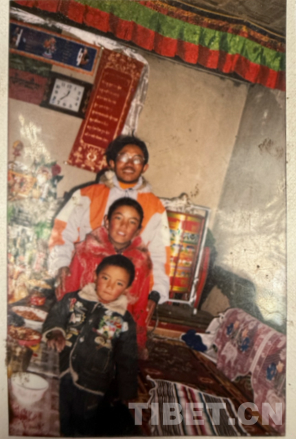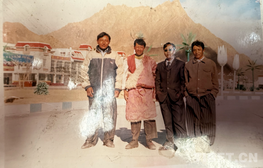 這是九十年代在阿里拍的,拍攝地點是現(xiàn)在的康樂新區(qū)。從照片上可以看到,那時候阿里建設得挺好。右邊第一個穿燈籠褲的是我。這種褲子當時特別流行,年輕小伙子們穿上可高興了。穿藏袍的是我弟弟,那時他還是個普通牧民,后來通過自己的努力,已經(jīng)是我們的村長了。戴墨鏡的是我們同村的,開車時和人發(fā)生沖突打壞了眼睛,去內地治療花了十多萬。后來因為眼睛問題駕照被注銷,也就沒辦法繼續(xù)開車了,現(xiàn)在在拉薩當保安。當時他正好在阿里開出租車,我們找到他一起拍了這張照片。左邊的大個子現(xiàn)在開了個商店和茶館,生意不錯。
