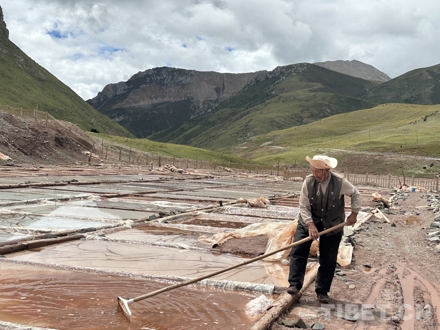 鹽田里,78歲的江羊巴桑正彎腰勞作,傳承著千年不變的制鹽技藝。江羊巴桑是白扎鹽場的一名鹽工,鹽是他們一家人賴以生存的東西,父輩靠鹽養(yǎng)活了他,他也靠著鹽養(yǎng)大了自己的十一個孩子。這位老鹽工曾在綜藝節(jié)目《種地吧》向觀眾展示了當?shù)厝斯欧ㄖ汽}的智慧。他在節(jié)目中表示:“為了養(yǎng)活一家老小,從小就開始制鹽,一直干到現(xiàn)在。以后無論是我的兒子,還是這個地區(qū)的年輕人,希望未來可以學習并延續(xù)好這一制鹽技藝?!苯虬蜕:唵味鎿吹脑竿褪窍M@種傳統(tǒng)的手工制鹽能夠代代相傳。